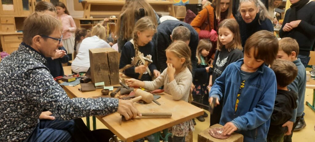 Letošní adventní jarmark nám pomohl naladit se na blížící se svátky. Užili jsme si první pohádky. S dětskou dramatickou skupinou Vlasta jsme nahlédli do života hraček v zavřeném pokojíčku. Zazpívali jsme si s Vaškem a zatančili s Hankou. Zapálili jsme první prskavky. Vyrobili jsme si adventní dekorace v řemeslných dílničkách. Děti vyráběly ozdoby i pro školní stromeček, který bude zdobit školu až do vánočních svátků.