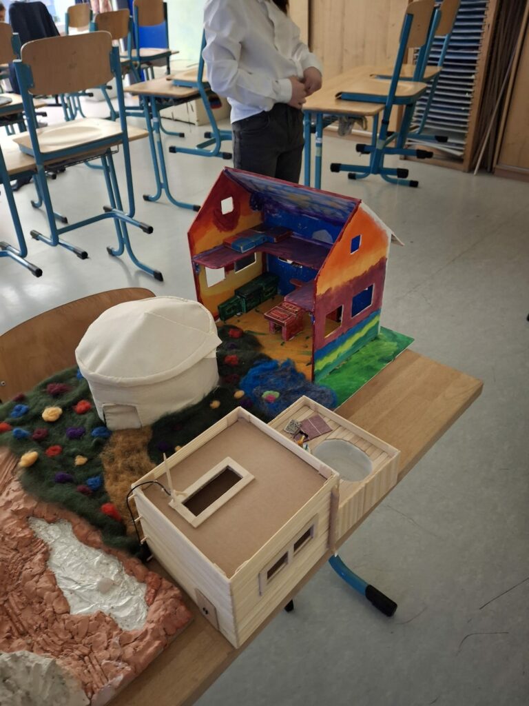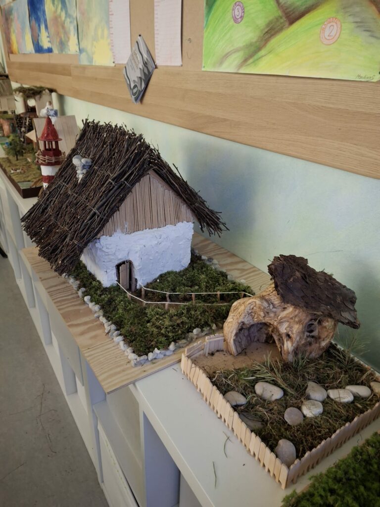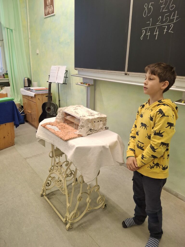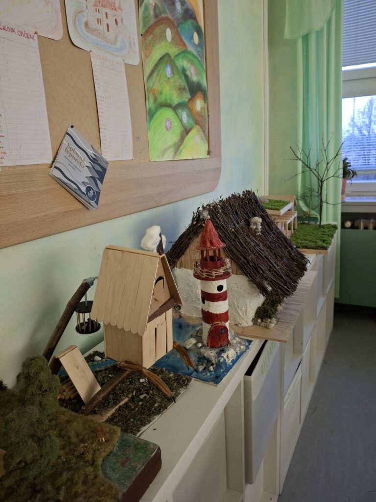 Čtvrťáci na závěr epochy „stavba domu“ představili spolužákům modely domů. Děti je sami vytvořily z přírodních materiálů. V praxi tak využily znalosti z výuky.