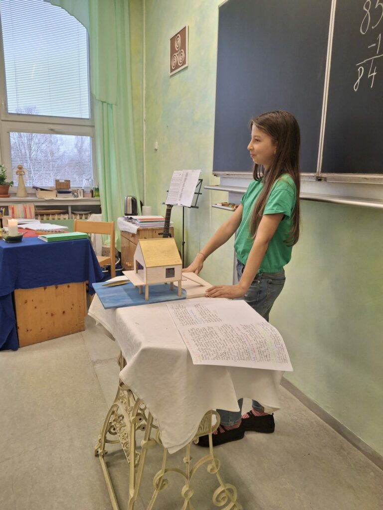 Projekt stavby domu prochází 3. a 4. třídou ve waldorfské škole. Děti se věnují tématu praktických činností a řemesel. V hodinách pak diskutují, jaké typy staveb se stavěly dříve, z jakých materiálů, jak taková stavba probíhala. Nakonec si zkusí zmenšený dům postavit sami.