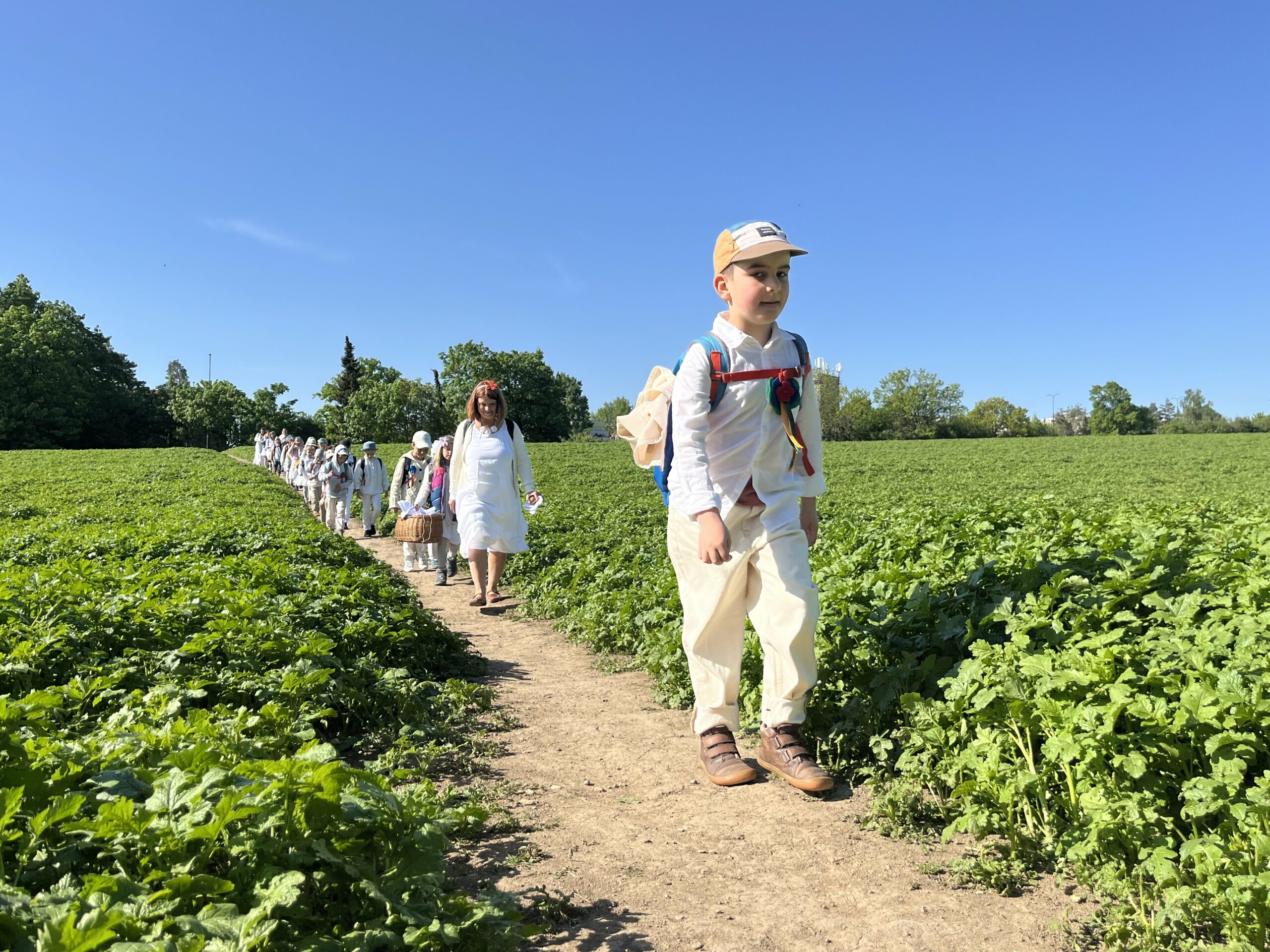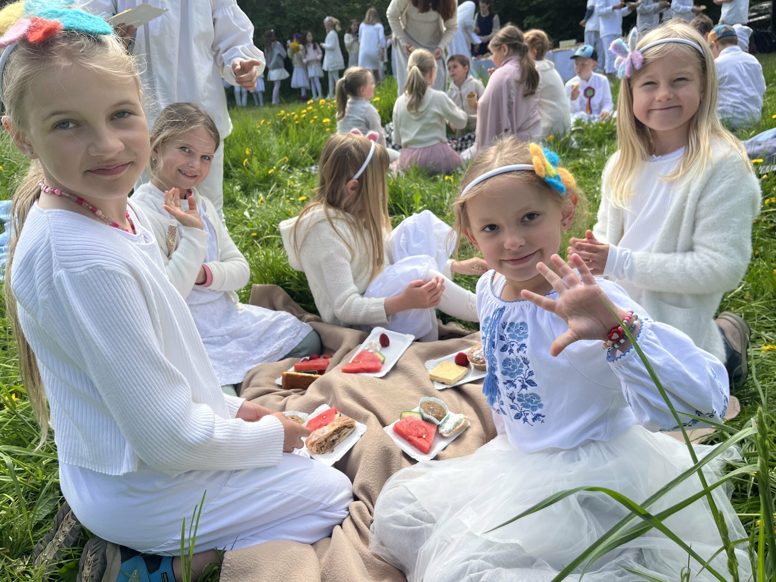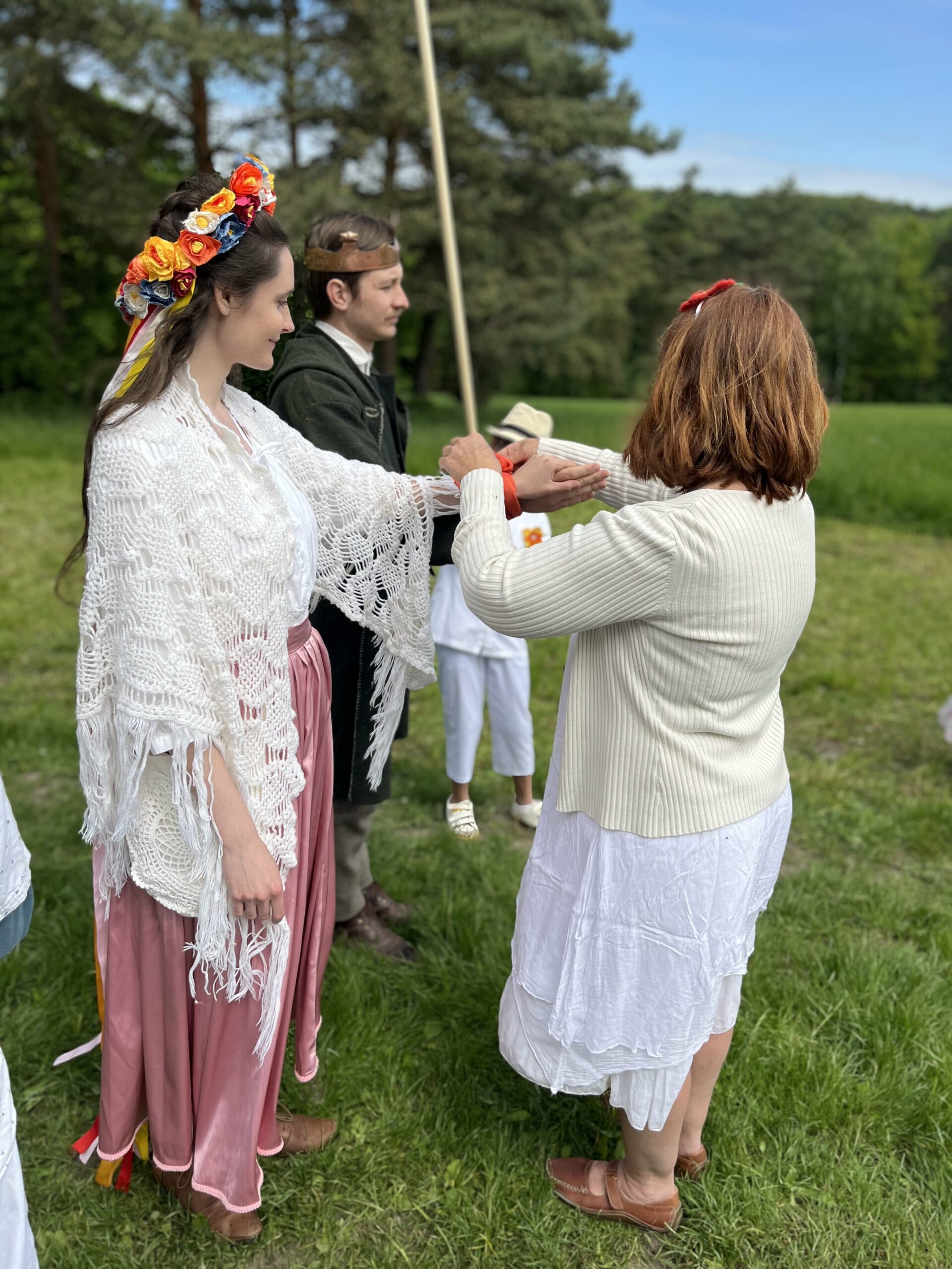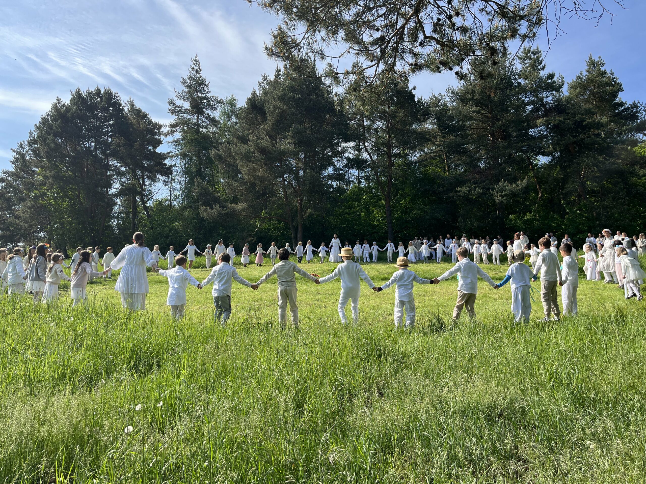 Společně jsme oslavili Letnice. Setkali jsme se na louce v pražské Šárce, chlapci v bílých košilích a dívky v bílých šatech. Děti zdobily věnce květy a papírovými holubičkami, tančily prastarou hru Na rytířstvo a zaplétaly v tanci stuhy kolem kmene máje. Za zpěvu se pak vydaly hledat krále a královnu. Mladý pár nakonec doprovodily ke svatebnímu obřadu.