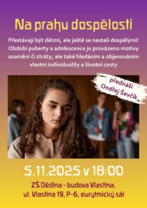 Milí rodiče a přátelé školy, srdečně vás zveme na přednášku na téma Na prahu dospělosti. Období puberty a adolescence je…