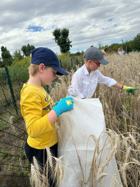 Děti jsou jako semínko. Kolem 9. roku najednou začnou vnímat svět jinak. Jejich JÁ se začne probouzet. Postupně se prosazuje. Děti procházejí velkou proměnou. V projektu „Ze zrna chléb“ mají možnost podobnou proměnu vidět a prožít, když jim na obdělaném políčku vyklíčí semínka v obilí a uzrají klasy. O víkendu budoucí čtvrťáci úspěšně sklidili. Na podzim je ještě čeká čištění obilí, mletí a pečení chleba.